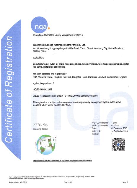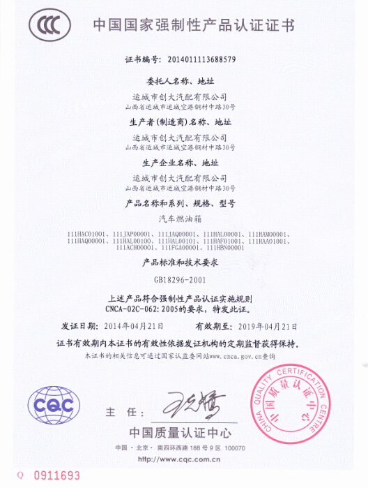 鋁合燃油箱3C證書(shū)